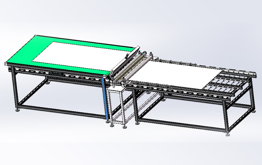 本生產(chǎn)線(xiàn)依據(jù)用戶(hù)需求,進(jìn)行“量身”設(shè)計(jì),由層壓前鋪設(shè)傳輸線(xiàn);通過(guò)不同機(jī)構(gòu)的傳輸、轉(zhuǎn)運(yùn)、變向、定位、旋轉(zhuǎn)/釋放實(shí)現(xiàn)組件封裝過(guò)程的流水化操作,可提高單位組件生產(chǎn)效率。
